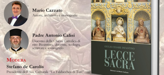 Sabato 29 luglio, alle ore 21.00 a Turi, il largo antistante la Chiesa di San Rocco ospiterà l’incontro culturale dal titolo: “Lecce Sacra e il Vescovo Oronzo, Santo e Taumaturgo”. L’appuntamento sarà l’occasione per approfondire la conoscenza della città di Lecce e in particolare gli aspetti storico-iconografici di Santo Oronzo Vescovo, dialogando con l’ultima pubblicazione dello storiografo Mario Cazzato, “Lecce Sacra” (edizioni Artwork Cultura), che ripropone l’omonima opera del 1634 di Giulio Cesare Infantino. Da programma, dopo i saluti istituzionali del primo cittadino Ippolita Resta, Stefano de Carolis, presidente dell’Associazione Culturale “La Faldacchea di Turi”, modererà il dialogo tra l’autore e Padre Antonio Calisi, diacono della Chiesa Cattolica di rito Bizantino, docente, teologo, scrittore e iconografo. L’incontro è patrocinato dal Comune di Turi, e dall’Associazione Culturale “La Faldacchea di Turi”.