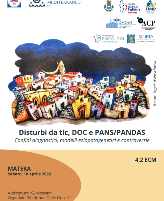 Sabato 18 aprile 2026 Matera ospiterà il convegno dal titolo “Disturbi da tic, Doc e Pans/Pandas: confini diagnostici, modelli eziopatogenetici e controversie” nell’Auditorium dell’Ospedale “Madonna delle Grazie”,