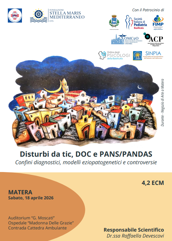 Sabato 18 aprile 2026 Matera ospiterà il convegno dal titolo “Disturbi da tic, Doc e Pans/Pandas: confini diagnostici, modelli eziopatogenetici e controversie” nell’Auditorium dell’Ospedale “Madonna delle Grazie”,