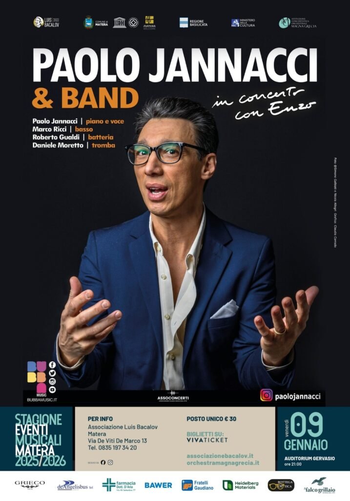 Una serata capace di toccare il cuore, tra nostalgia e rinnovata creatività: la Stagione Eventi Musicali 2025/2026, promossa dall’Associazione Luis Bacalov in collaborazione con l’Orchestra ICO Magna Grecia, ospita l’atteso evento “Paolo Jannacci & Band – in concerto con Enzo”, in programma il 9 gennaio alle ore 21 presso l’Auditorium Gervasio di Matera. Un concerto che va oltre il semplice tributo, diventando un viaggio emozionale nella musica del grande Enzo Jannacci.