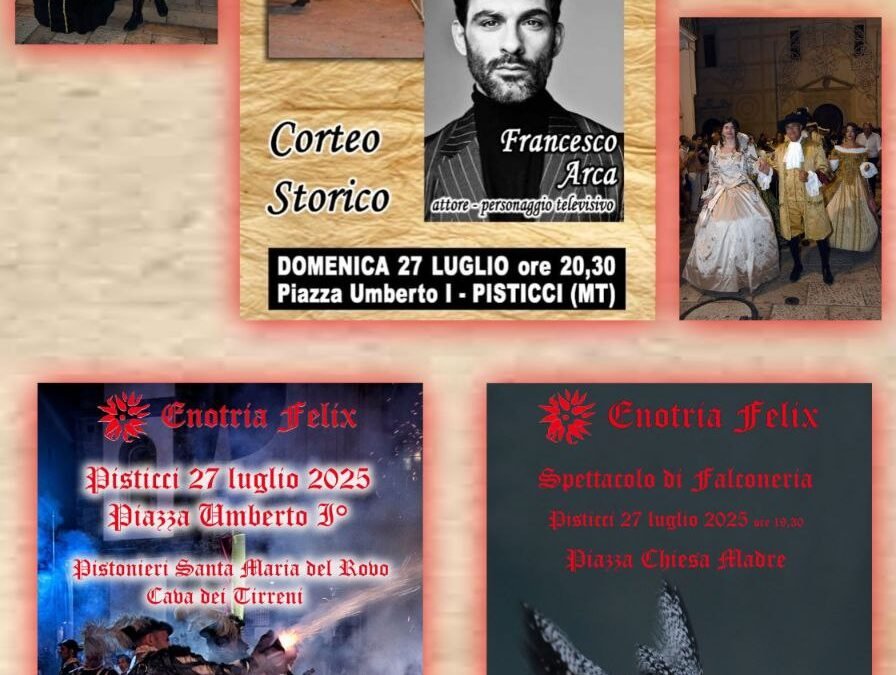 L’associazione Enotria Felix, con il patrocinio e il sostegno di Comune di Pisticci, Provincia di Matera, Regione Basilicata, EPLI e APT e in collaborazione con Centro Studi Gymnasium, presenta l’edizione 2025 della rievocazione storica La Taccariata.