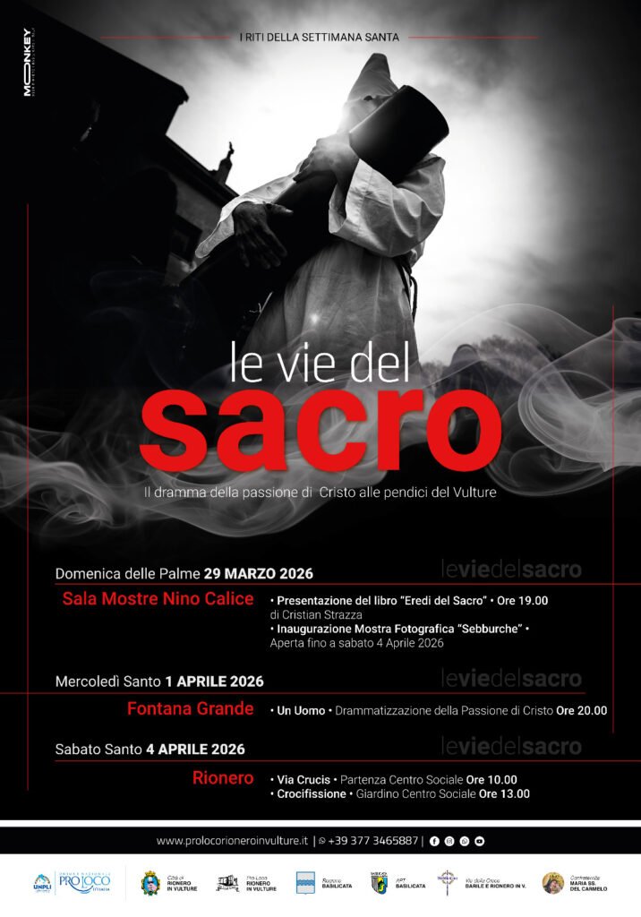 La tradizione, la fede e la memoria collettiva tornano a intrecciarsi a Rionero in Vulture con “Le vie della croce”, il percorso di appuntamenti dedicato ai riti della Settimana Santa promosso dalla Pro Loco Rionero in Vulture. Tre momenti accompagneranno cittadini e visitatori in un viaggio intenso tra storia, spiritualità e identità comunitaria, valorizzando uno dei patrimoni culturali più profondi del territorio.
