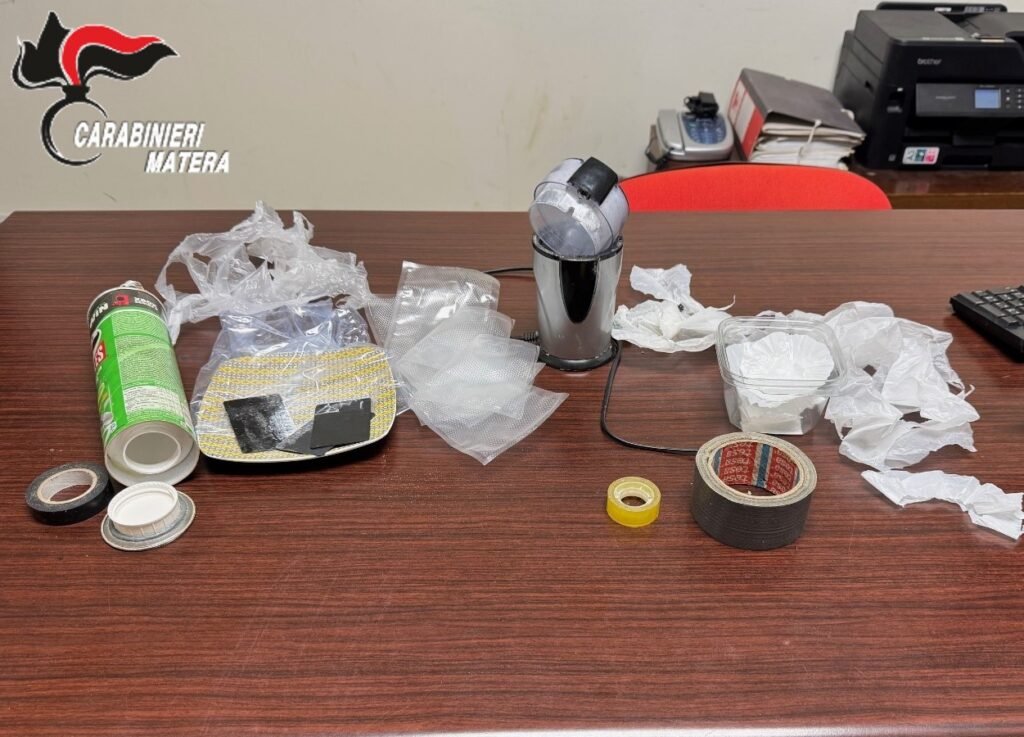 Avendo così acquisito gravi indizi di colpevolezza per l’ipotesi di reato di detenzione ai fini di spaccio di sostanze stupefacenti, porto di armi bianche e di strumenti atti ad offendere, l’uomo veniva tratto in arresto e, dopo le formalità di rito, su disposizione del Pubblico Ministero della Procura della Repubblica presso il Tribunale di Matera, che ha coordinato le indagini, veniva tradotto presso la Casa Circondariale della Città dei Sassi, in attesa dell’Udienza di convalida.