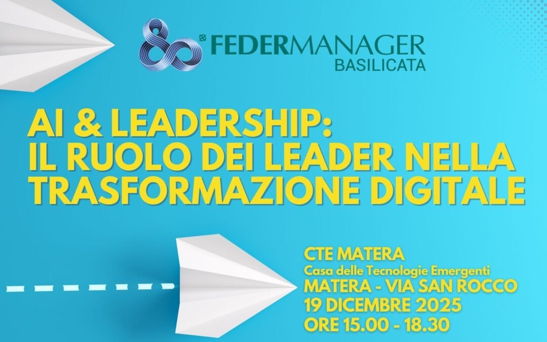 Venerdì 19 dicembre, dalle 15:00 alle 18:30, alla Casa delle Tecnologie Emergenti (CTE) di Matera, il workshop: “AI & Leadership: il ruolo dei leader nella trasformazione digitale” organizzato da Federmanager Basilicata. Il workshop tenuto da Alessandra Lazazzara, docente all’Università degli Studi di Milano ed esperta di AI applicata ai processi HR, workplace inclusion e digital mindset; è autrice di numerose pubblicazioni scientifiche nazionali e internazionali ed è considerata una delle principali voci italiane sui temi della trasformazione digitale delle organizzazioni.