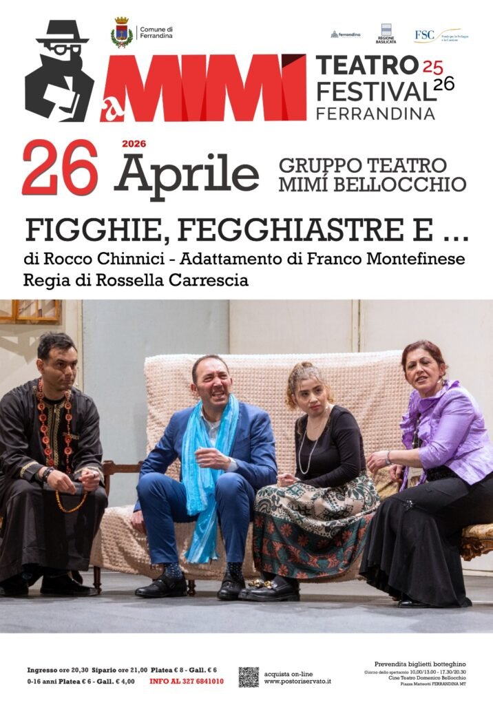 Teatro Festival Ferrandina – a Mimì chiude la sua stagione con un appuntamento intenso e profondamente umano. Il Gruppo Teatro Mimì Bellocchio porta in scena Figghie, Fegghiastre e…, testo di Rocco Chinnici reinterpretato da Franco Montefinese e diretto con sensibilità e ritmo da Rossella Carrescia.