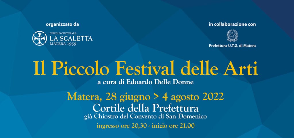 “Desidero ringraziare – sottolinea il Presidente del Circolo La Scaletta, Paolo Emilio Stasi – il Prefetto di Matera, Sante Copponi, per la collaborazione e l’entusiasmo con cui ha voluto portare avanti il progetto. Crediamo che si tratti di un’iniziativa che arricchisce l’offerta culturale della città. La vocazione turistica e culturale della nostra città necessita, accanto alle bellezze naturalistiche, artistiche, architettoniche, di eventi attrattivi di elevato spessore così come intende proporre con i suoi variegati appuntamenti il Piccolo Festival delle Arti”.
