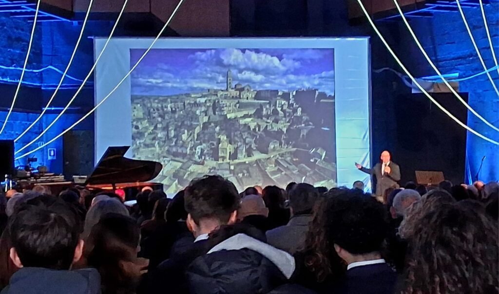 Oggi, dopo quasi mille anni, sarà di nuovo l’Italia, il Mezzogiorno d’Italia, ad avvicinare l’Europa al Mediterraneo. Matera 2026 è un progetto aperto a tutti i cittadini, ai Comuni della Basilicata e del Mezzogiorno, alle Istituzioni nazionali e internazionali. Europa e Mediterraneo si incontrano oggi in un semplice e potentissimo punto focale, da cui scaturisce un’energia che ha trasformato il destino di una comunità, e che si staglia verso il cielo come messaggio di fiducia per molti. Questo punto focale coincide con il “campanile” di un Municipio italiano, quello della città di Matera, Capitale Mediterranea della Cultura e del Dialogo 2026.