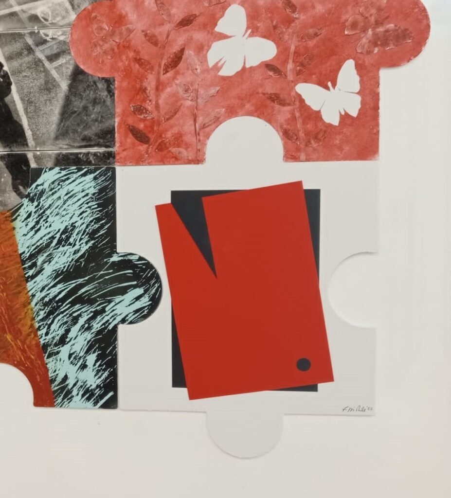Oggi, le tessere del puzzle sono 130 e nella sala Orsini di Palazzo Chigi, grazie all’impegno dell’artista e Direttore artistico Vinicio Prizia, sono dagli ideatori montate, incastrate, assemblate per una visione stranamente “unitaria”, nella quale i linguaggi e gli stili a volte collidono o collimano, stridono o si armonizzano, secondo la soggettiva visione di chi fruisce; questa “composizione” di tessere che co-struttivamente danno forma ad una texture, una trama per una concezione alternativa al processo consueto del “mostrare”, propone così un gioioso “sentiero poetico” da percorrere, misurandosi sempre con nuovi spazi da interpretare, espandendo o contraendo la “magmatica” forma.