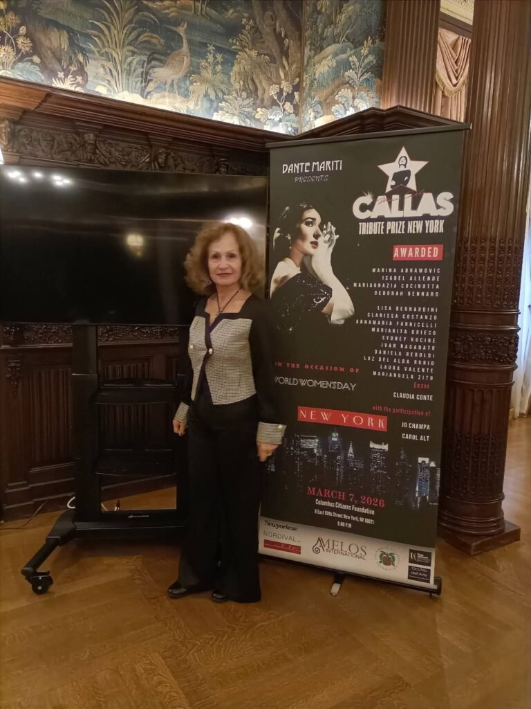 Periodo di grazia e molti spostamenti per la scrittrice e poetessa Annamaria Farricelli, che dura oramai da mesi. Tanti premi in giro per l’Italia, critica favorevole ai suoi libri, sincero apprezzamento da parte dei lettori. Tra gli ultimi impegni in calendario, la presentazione a Casa Sanremo Writers della sua opera “In un soffio d’amore” (ed. WE) durante l’omonimo Festival della Canzone Italiana, la ristampa in una veste rinnovata per Amazon del racconto che le assomiglia di più, “L’Eco del Silenzio”, ma soprattutto l’ovazione ricevuta a NY in occasione della sesta assegnazione del prestigiosissimo Maria Callas Tribute Prize. Pluripremiata a livello nazionale ed internazionale, Annamaria Farricelli è riconosciuta per il suo contributo alla letteratura e alla poesia. La sua opera è caratterizzata da un profondo esame dell’anima e delle emozioni, spesso affrontando temi di rinascita e di speranza attraverso un linguaggio semplice, ma mai banale. Le sue “creature” sono accolte in sillogi, antologie, racconti, romanzi. La nota Autrice si e’ recata nella Grande Mela in occasione della Giornata Internazionale della Donna, dove ha ritirato, tra illustre presenze femminili presenti, il suo award dedicato alla indimenticabile soprano drammatica d’agilità. In carriera la Farricelli ha trasformato con la scrittura la fragilità psichica in potenza letteraria, restituendo voce a chi è nel silenzio e incarnando lo spirito di resilienza e audacia che ha reso Maria Callas un’icona immortale di New York e del mondo. La cerimonia di premiazione si è tenuta il 7 marzo 2026 presso la prestigiosa Columbus Citizens Foundation, punto di riferimento per la comunità italo – americana nella Big Apple. L’happening, prodotto da Melos International in collaborazione con la Columbus Citizens Foundation, ha visto la partecipazione di numerose personalità del mondo istituzionale e culturale italo-americano e ha premiato, oltre ad Annamaria, altre donne che si sono distinte in ambiti diversi – dal sociale all’informazione, dall’arte alla musica – contribuendo in maniera significativa alla crescita culturale e civile della società contemporanea.
