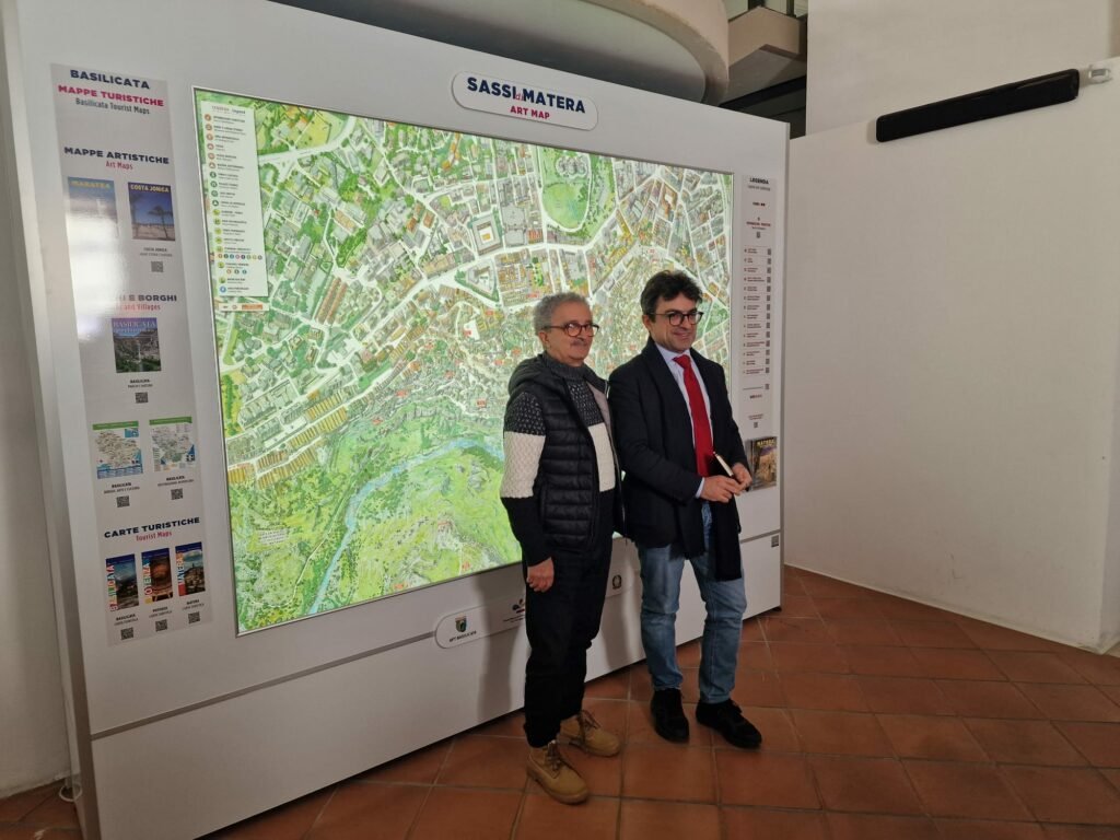 Infine, è stata inaugurata la mappa di Matera all’ingresso dell’Open Space. Si tratta di una mappa Turistica disegnata a mano con il sistema 3D Hand Drawing Design, destinata a diventare la base per ulteriori prodotti di comunicazione visiva finalizzati a valorizzare ulteriormente il ricco patrimonio storico e artistico della Capitale europea della cultura.