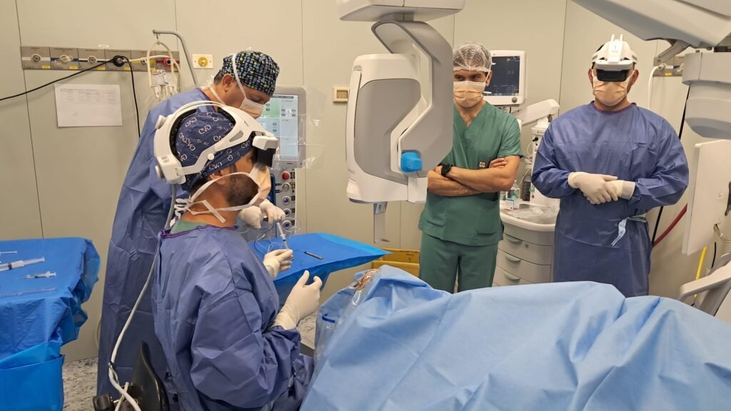 Il Beyonics One è un microscopio interamente digitale che integra la realtà aumentata per migliorare la precisione e l’efficacia degli interventi chirurgici. Questo dispositivo consente ai chirurghi di visualizzare immagini tridimensionali ad alta definizione del campo operatorio, eliminando la necessità dei tradizionali oculari. Le immagini vengono elaborate in tempo reale da un supercomputer e trasmesse a un visore 4K indossato dai chirurghi, simile a un casco.