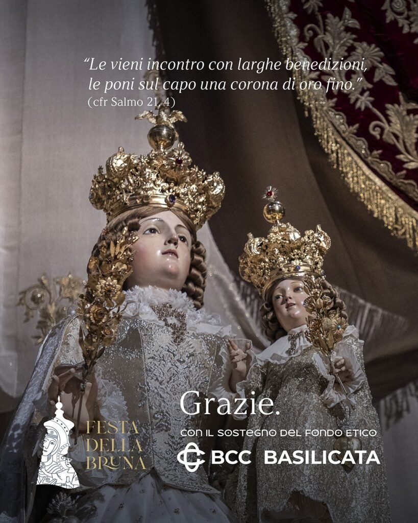L’Associazione Maria SS. della Bruna esprime la propria profonda gratitudine a BCC Basilicata per il prezioso e generoso contributo destinato alla realizzazione delle nuove corone per la sacra effige della Protettrice di Matera.