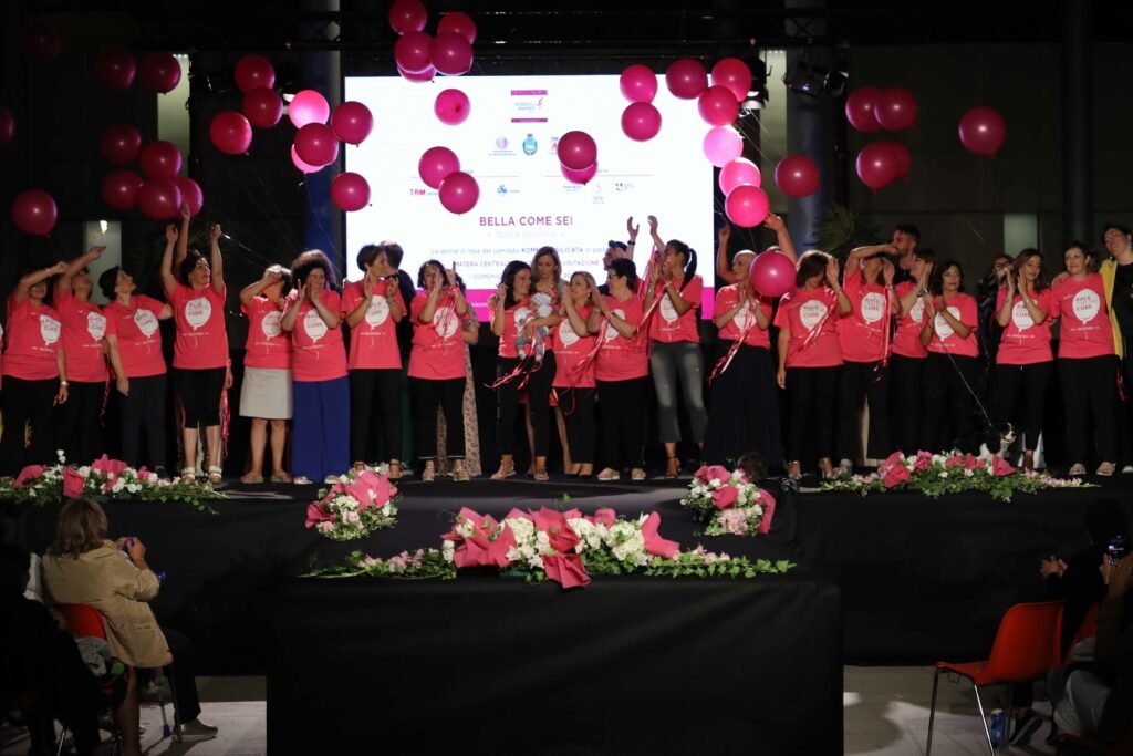 Matera nel piazzale antistante la stazione Matera Centrale delle Ferrovie Appulo Lucane, 25 donne in rosa che hanno dimostrato lo loro bellezza e la loro forza sfilando sulla passerella della terza edizione di “Bella come sei”. L’iniziativa, organizzata per il terzo anno dal Comitato Basilicata di Komen Italia, ha voluto far emergere con forza la bellezza e il coraggio delle donne che hanno affrontato o stanno affrontando la diagnosi di tumore del seno, senza il timore di parlare della loro malattia, anzi ricevendo determinazione ed energie dalle altre donne che condividono e combattono lo stesso male.