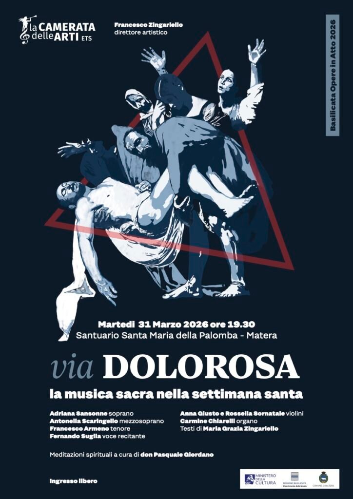Martedì 31 marzo 2026, alle ore 19.30, il suggestivo scenario del Santuario Santa Maria della Palomba ospiterà “Via Dolorosa”, un evento che intreccia musica sacra, parola e meditazione, offrendo al pubblico un’esperienza artistica e spirituale di grande intensità nel cuore della Settimana Santa.