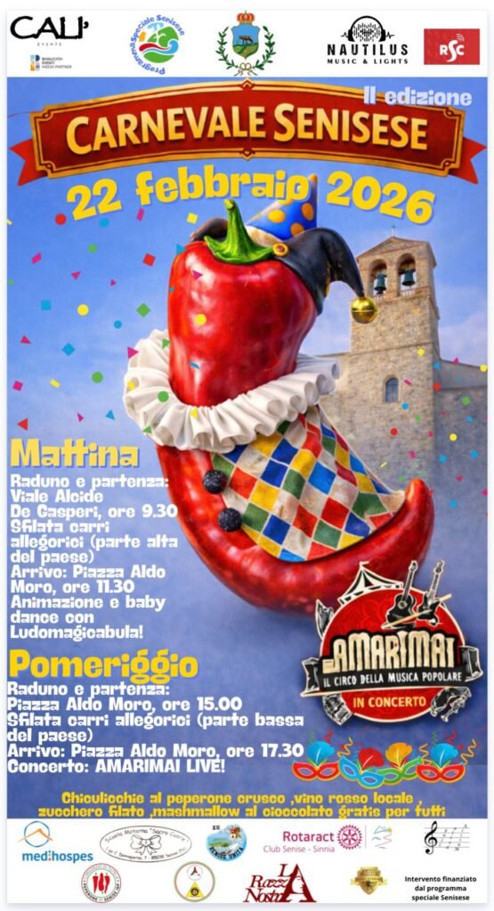 Dopo il grande riscontro ottenuto nella scorsa edizione, Senise si prepara a vivere la seconda edizione del Carnevale Senisese, in programma il 22 febbraio 2026. L’evento punta a consolidarsi come appuntamento identitario e tradizionale per l’intera comunità, rafforzando il legame tra festa, territorio e partecipazione collettiva.