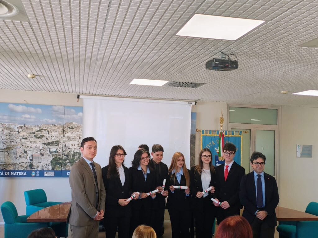 Il sindaco Antonio Nicoletti e l’assessore alle Politiche Giovanili Giuseppe Casino hanno consegnato agli studenti pergamene di riconoscimento a nome della città di Matera.