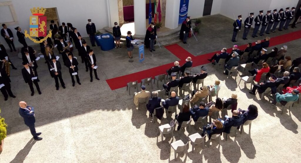Alle 10.30 è seguita la cerimonia pubblica nel cortile dell’ex Ospedale San Rocco in Piazza San Giovanni Battista, alla presenza delle Autorità civili, militari e religiose, nonché di una delegazione dell’A.N.P.S. – Associazione Nazionale della Polizia di Stato.