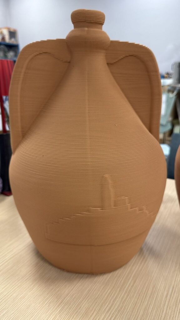 Da questa visione nasce Chichimo, reinterpretazione contemporanea dell’omonimo recipiente in terracotta tipico della tradizione rurale lucana, un tempo utilizzato per trasportare acqua e vino. A firmare il progetto sono i giovani designer Simone Marcosano e Giuseppe Cappiello, che hanno scelto di mantenere la materia originaria ma trasformare il processo creativo, affidandolo alla stampa 3D in ceramica tramite stampante Delta WASP 40100.