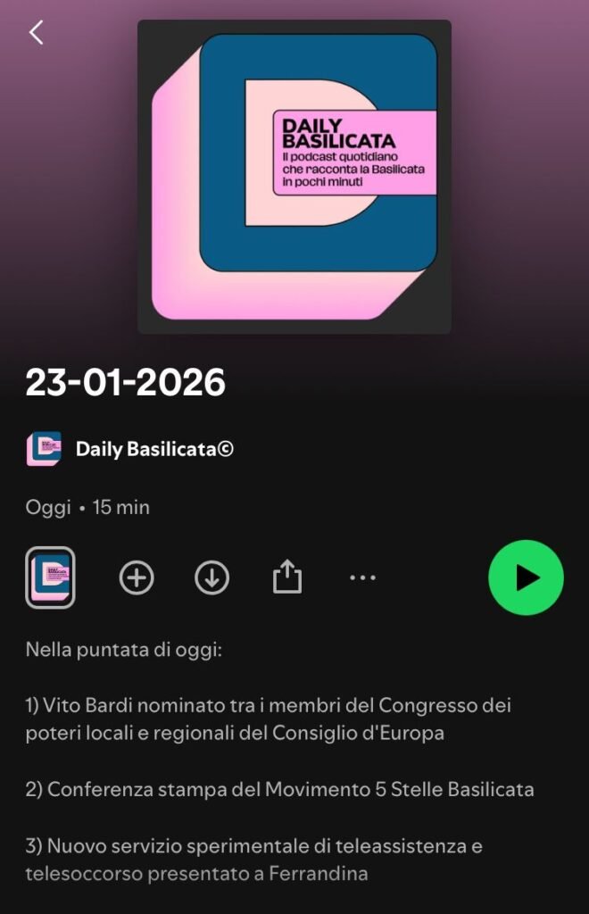 Prosegue con successo un nuovo progetto editoriale dedicato a tutti i lucani: “Daily Basilicata”, il primo podcast quotidiano interamente pensato per chi vuole iniziare la giornata con uno sguardo chiaro e completo su tutto ciò che accade in regione.