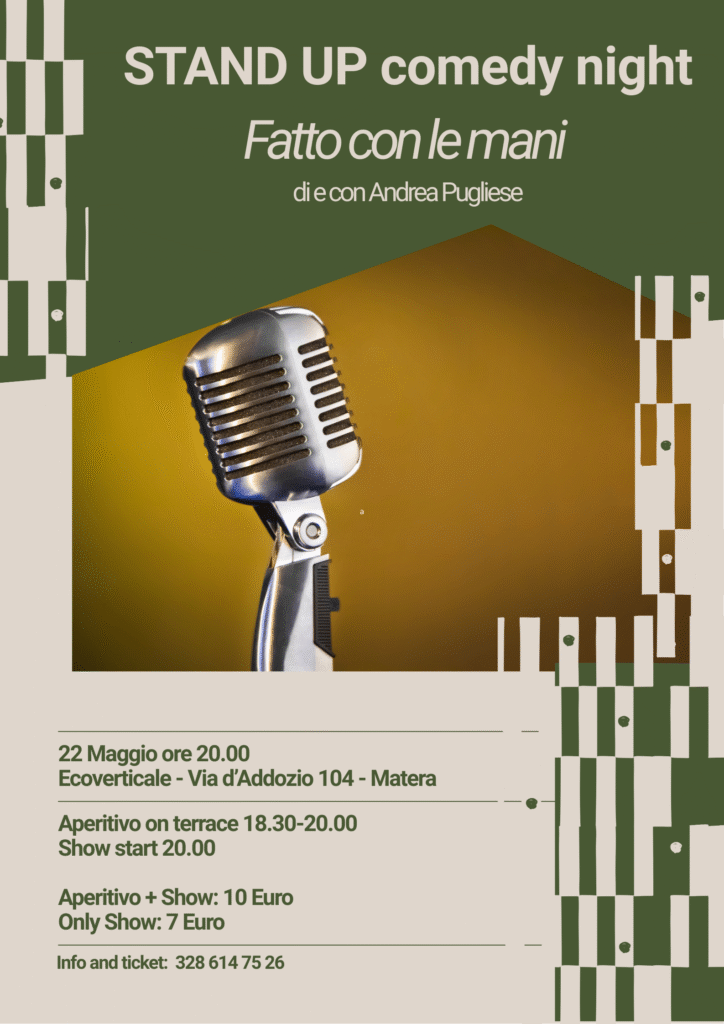 “Ciò che di meglio realizziamo nella vita è fatto con le mani. Vale per le opere d’arte, le coccole, i gestacci e le indicazioni. Vale anche per la comicità che va scritta, poi corretta, su fogli spesso bagnati da lacrime di risate o di sconforto”. Così Andrea Pugliese annuncia il suo show di stand up comedy, Fatto con le mani, in programma il 22 maggio 2025, ore 20 presso Ecoverticale, a Matera. “È uno spettacolo per un pubblico partecipe e giocherellone – aggiunge lo scrittore e standup comedian – Sorprenderà chi si avvicina per la prima volta al genere del momento come i più scafati in materia”.