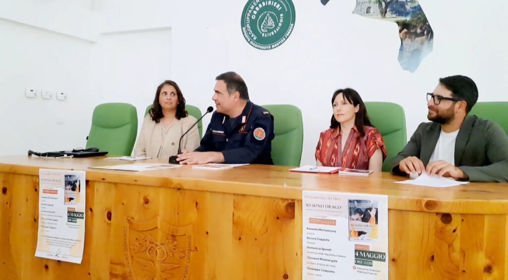 Dopo i saluti della senatrice Domenica Spinelli e dell’assessore del Comune di Gioia del Colle Andrea Benagiano in rappresentanza del sindaco Giovanni Mastrangelo, sono intervenuti il tenente colonnello Notarnicola, l’ediore Serena Cappello l’autrice e Colapinto. Presente in sala anche Lucio Cetra, istruttore di equitazione dal 1969 e proprietario del centro di turismo equestre più conosciuto del Salento, “Il maneggio di Lucio”.