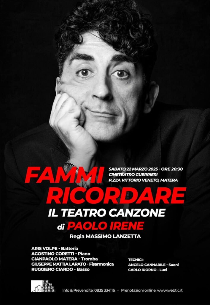 Paolo Irene torna sulle scene e lo fa in maniera forte, in teatro, con uno spettacolo completo dove può mettere a frutto tutte le sue qualità artistiche: “Fammi ricordare il teatro canzone” tra brani originali, standard jazz, con la regia di Massimo Lanzetta che ha messo in ordine la produzione, testi e musiche, del poliedrico cantautore e architetto.