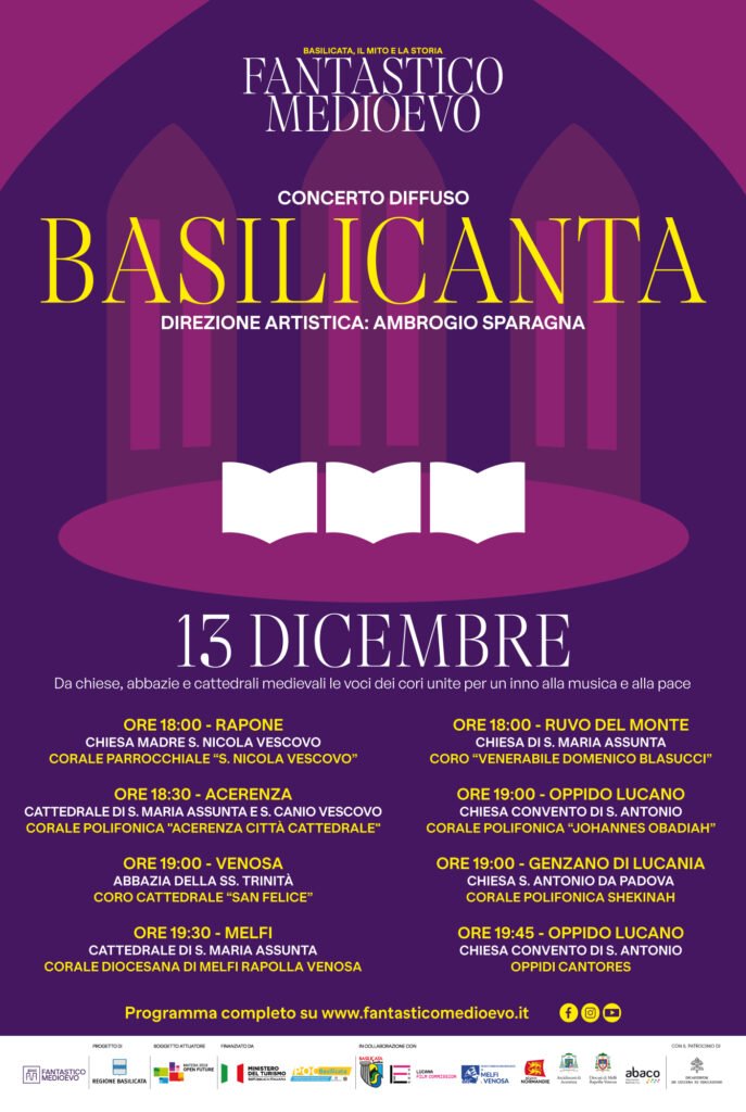 Ideato e diretto dal maestro Ambrogio Sparagna, Basilicanta da avvio alla collaborazione con la Diocesi di Melfi- Rapolla- Venosa e l’Arcidiocesi di Acerenza all’interno del progetto Fantastico Medioevo, promosso dalla Presidenza della Giunta Regionale di Basilicata e coordinato dalla Fondazione Matera-Basilicata 2019, in collaborazione con Apt Basilicata, Lucana Film Commission, Musei e Parchi Archeologici di Melfi e Venosa, Regione Normandia, con la direzione scientifica del prof. Fulvio Delle Donne e la direzione artistica del poeta Davide Rondoni. Il progetto punta a riportare in primo piano il ruolo che la Basilicata ha avuto nel Medioevo come crocevia politico, luogo di approdo e ripartenza di multiformi culture nel cuore del Mediterraneo, e valorizzare il patrimonio medievale della regione attraverso una serie di iniziative di carattere multidisciplinare che puntano a riscoprire il dinamismo e la creatività di questa epoca storica.