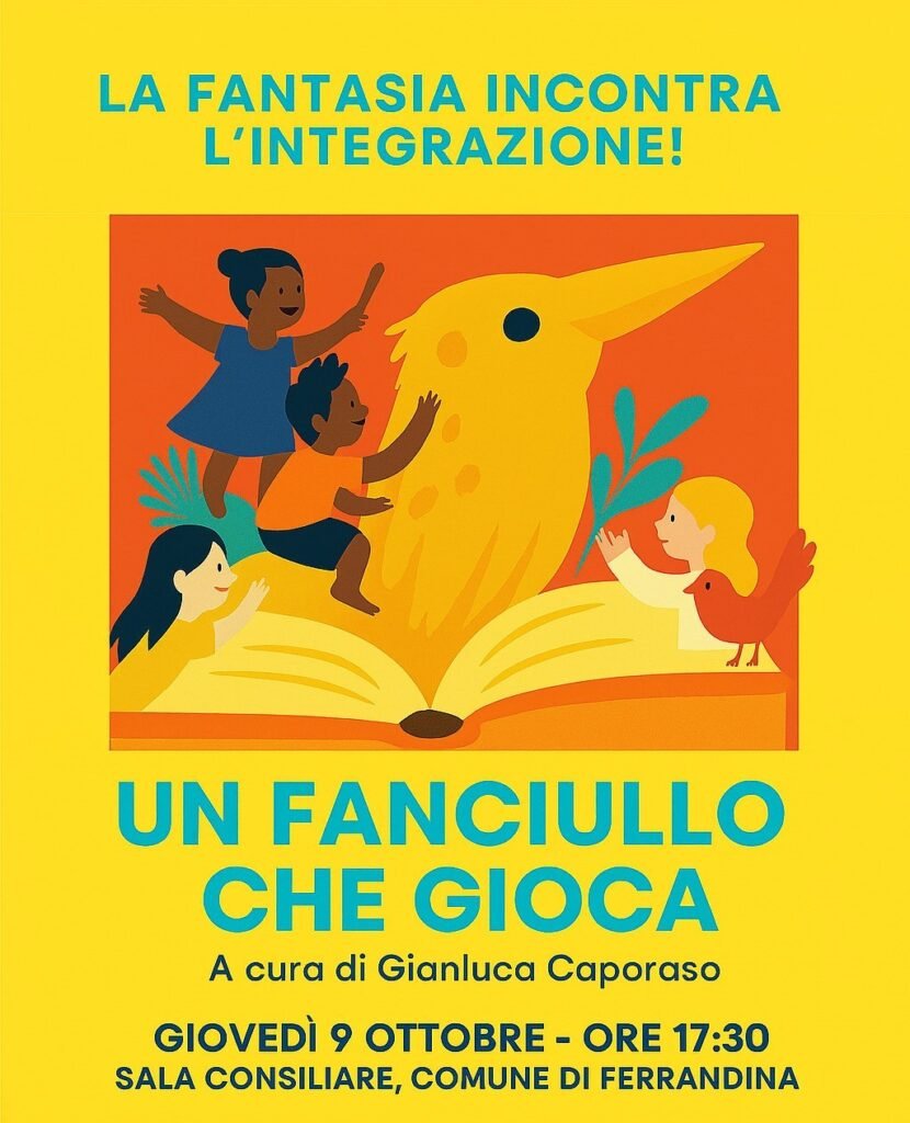 Sarà presentato giovedì 9 ottobre, alle ore 17.30, nella Sala Consiliare del Comune di Ferrandina, il libro “Un fanciullo che gioca”, una preziosa testimonianza dei risultati di un laboratorio di scrittura fantastica tenutosi nell’estate del 2025.