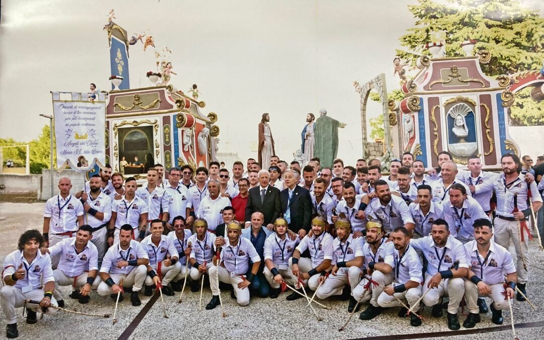 “A sole 8 settimane dalla Festa – afferma Mariano Iacovone, presidente degli Angeli – cresce l’adrenalina perchè è ormai iniziato il conto alla rovescia. Il clima che si respira è di grande attesa. Il mio primo pensiero è quello di mantenere unito il gruppo, un aspetto fondamentale per la buona riuscita delle nostra missione di protettori del manufatto in cartapesta. Il giorno della festa noi siamo un centinaio, ma dobbiamo saperci coordinare e capirci al volo per poter fronteggiare al meglio, e in completa sicurezza, la pressione gioiosa dei cittadini che vivono il 2 luglio. Per far vivere a tutti una festa serena noi ci prepariamo al meglio cementando i rapporti tra di noi come fossimo una squadra che opera all’unisono, con l’obiettivo di consegnare il carro all’assalto della città in Piazza Vittorio Veneto. Per farlo al meglio dobbiamo saperci coordinare con le Forze dell’Ordine, l’auriga e i cavalieri. Oltre a relazionarci nel migliore dei modi con la folla eccitata, contenendo eventuali assalti prematuri che alcuni, irrispettosi della tradizione, tentano ogni anno. Io stesso, da ex assaltatore so quale è l’adrenalina incontenibile degli ultimi momenti della corsa del carro dalla Cattedrale verso piazza Vittorio Veneto, per questo esorto i miei ragazzi, durante gli incontri preparativi, a tenere i nervi saldi perchè tutto fili liscio e nessuno si faccia male. Solo così, con questa grande forza di squadra, riusciamo a garantire alla città e ai tanti visitatori uno spettacolo grandioso ed emozionante”. Ma gli Angeli del Carro non sono solo i protettori del carro nel giorno del due luglio, ma sono molto attivi sul fronte della solidarietà nei restanti mesi dell’anno. “La solidarietà – sottolinea Iacovone – rientra nella nostra mission. Poche settiname fa abbiamo donato libri e arredi al reparto di Neuropsichiatria infantile dell’Ospedale Madonna delle Grazie di Matera. Nelle prossime settimane, completeremo questa azione benefica donando anche giocattoli, tavoli, sedie e altri arredi nello stesso reparto”. Ma gli Angeli del Carro sono anche i custodi della tradizione della Festa, una tradizione che va onorata e rispettata in ogni momento, da quello religioso fino alla distruzione del carro. “Il mio appello ai turisti – conclude Maiano Iacovone- è quello di venire in città già nei giorni precedenti la festa per respirare quest’aria di irripetibile gioia, la stessa emozione che poi io leggo nei loro occhi. L’appello a noi Materani, invece, è quello di essere i garanti delle tradizioni della festa. Una tradizione che culmina nell’assalto al carro nel centro della piazza Vittorio Veneto. Per offrire a tutti la certezza di uno spettacolo che è unico al mondo in quel tripudio di colori che la folla felice e soddisfatta ci regala”.