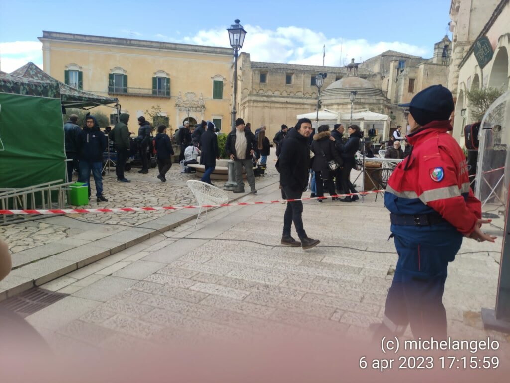 Il cantante è stato impegnato nel pomeriggio di oggi in piazza Vittorio Veneto dove il Belvedere Guerricchio è diventato il Bar Tripoli mentre l’ingresso del cinema Guerrieri è stato trasformato in quello del Palazzo di Giustizia.
