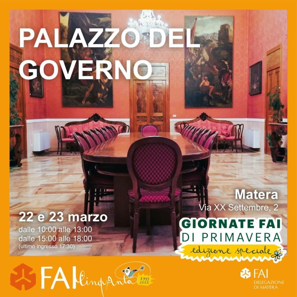 La Prefettura di Matera apre le porte ai cittadini in occasione delle Giornate FAI di Primavera in programma il 22 e 23 marzo 2025.