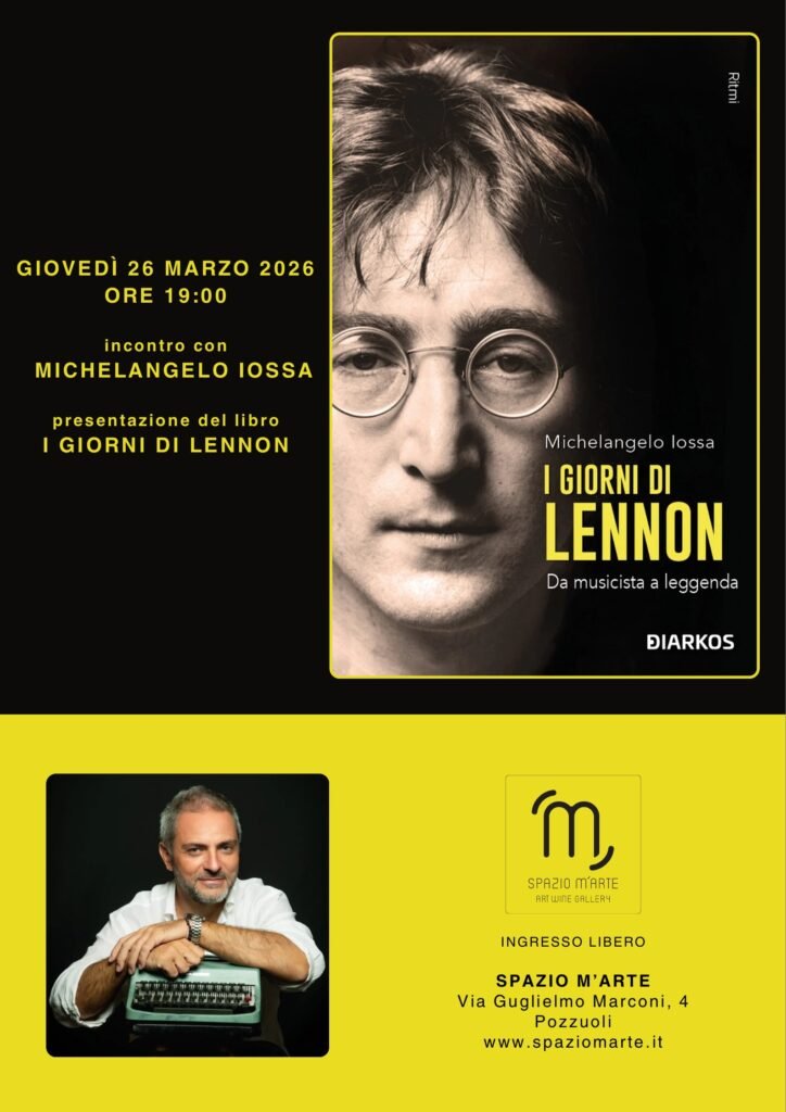Giovedì 26 marzo 2026, alle ore 19:00, lo Spazio M’Arte (Via Guglielmo Marconi, 4 – Pozzuoli) ospiterà la presentazione del libro “I Giorni di Lennon” di Michelangelo Iossa, giornalista, scrittore e tra i più apprezzati studiosi italiani del fenomeno-Beatles.