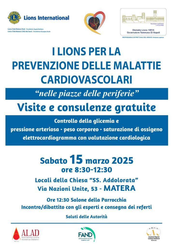 Lo screening è stato organizzato dai Lions Club Matera Host e Matera Città dei Sassi, dalle Associazioni provinciali e regionali dei diabetici e dall’Associazione dei cardiologi ambulatoriali.