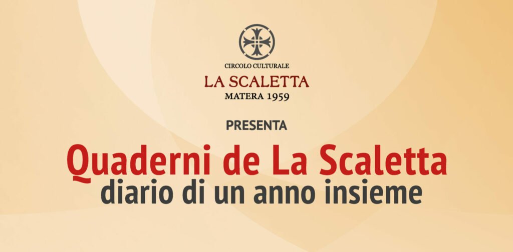 Per celebrare il primo anniversario di vita della rivista, il Circolo culturale La Scaletta ha organizzato per martedì 26 aprile 2022, alle ore 11, nel Salone di Palazzo Malvinni Malvezzi a Matera, un incontro-dibattito a cui parteciperanno il Presidente del Circolo, Paolo Emilio Stasi, il curatore della pubblicazione, Edoardo Delle Donne, e il fondatore del Circolo, Michele De Ruggieri, che è stato il promotore e l’animatore dei Quaderni negli anni ’60-’80. Nell’occasione sarà presentato il nuovo numero della rivista che si potrà, è questa la novità, scaricare in formato pdf e stampare direttamente dal sito internet www.lascaletta.net.