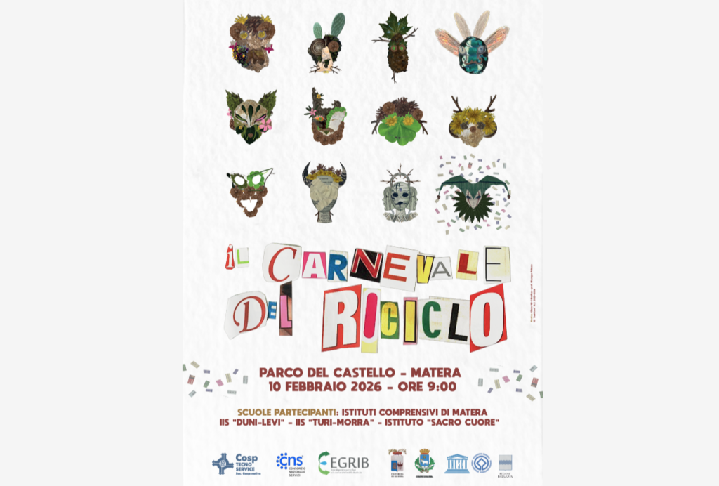 Si svolgerà il 10 febbraio dalle ore 09:00 alle13:00 presso il castello Tramontano di Matera la IV edizione del “Carnevale del Riciclo”. Saranno coinvolti gli studenti degli istituti comprensivi di Matera, il “Duni-Levi”, il Turi- Morra” e il “Sacro Cuore”: