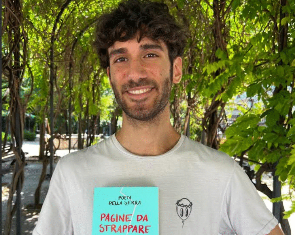 Il Poeta della Serra ha iniziato a scrivere componimenti poetici dal 2014 e ha pubblicato due raccolte di poesie, Frutti di male (2021) e Biscotti della sfortuna (2023). Nel 2025 è uscito per la casa editrice Mondadori il libro Pagine da strappare per non strapparsi, che verrà presentato giovedì 17 luglio nella Fondazione Le Monacelle, in via Riscatto 9,con inizio alle 18:30. Dialogheranno con l’autore, Michela Gargano e Agnese Ferri.