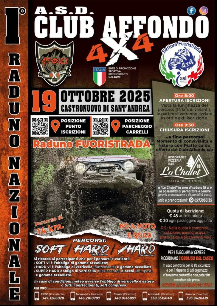 È tutto pronto a Castronuovo di Sant’Andrea per il primo raduno Nazionale Fuoristrada promosso il 19 ottobre dall’A.S.D. Club Affondo.