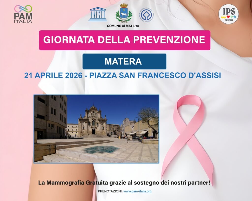 Mammografie gratuite PAM Italia a Matera (21 Aprile 2026)
