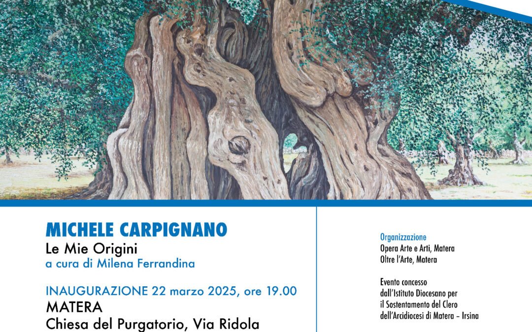 Sabato 22 marzo 2025 alle ore 19:00, si inaugura la mostra personale del maestro Michele Carpignano “Le Mie Origini”, organizzata dalla galleria Opera Arte e Arti in collaborazione con la cooperativa Oltre l’Arte presso la Chiesa del Purgatorio a Matera.