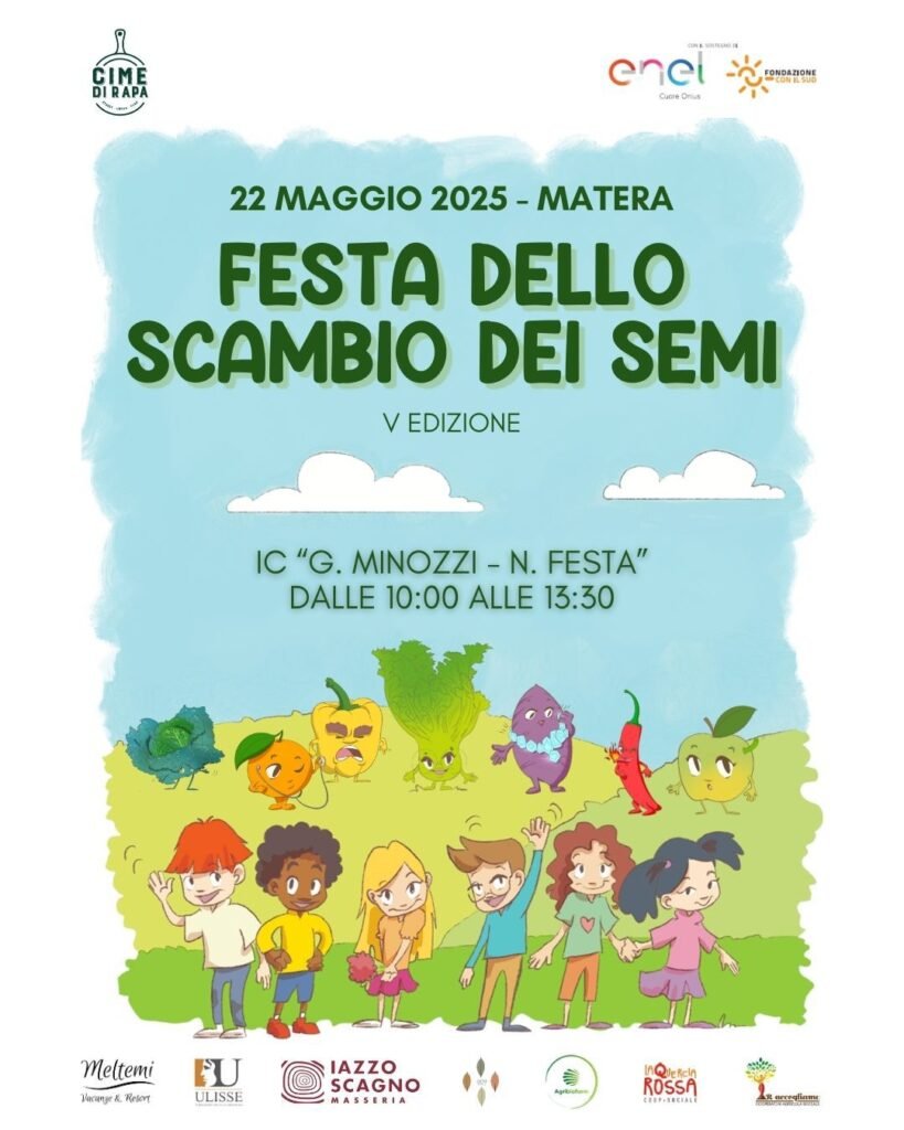 Tutto pronto a Matera per la quinta edizione della Festa dello scambio dei semi di Cime di Rapa Education che si svolgerà giovedì 22 maggio 2025 dalle ore 10 alle ore 14 presso l’Istituto Comprensivo “G. Minozzi – N. Festa” in Via Lucana, 192.