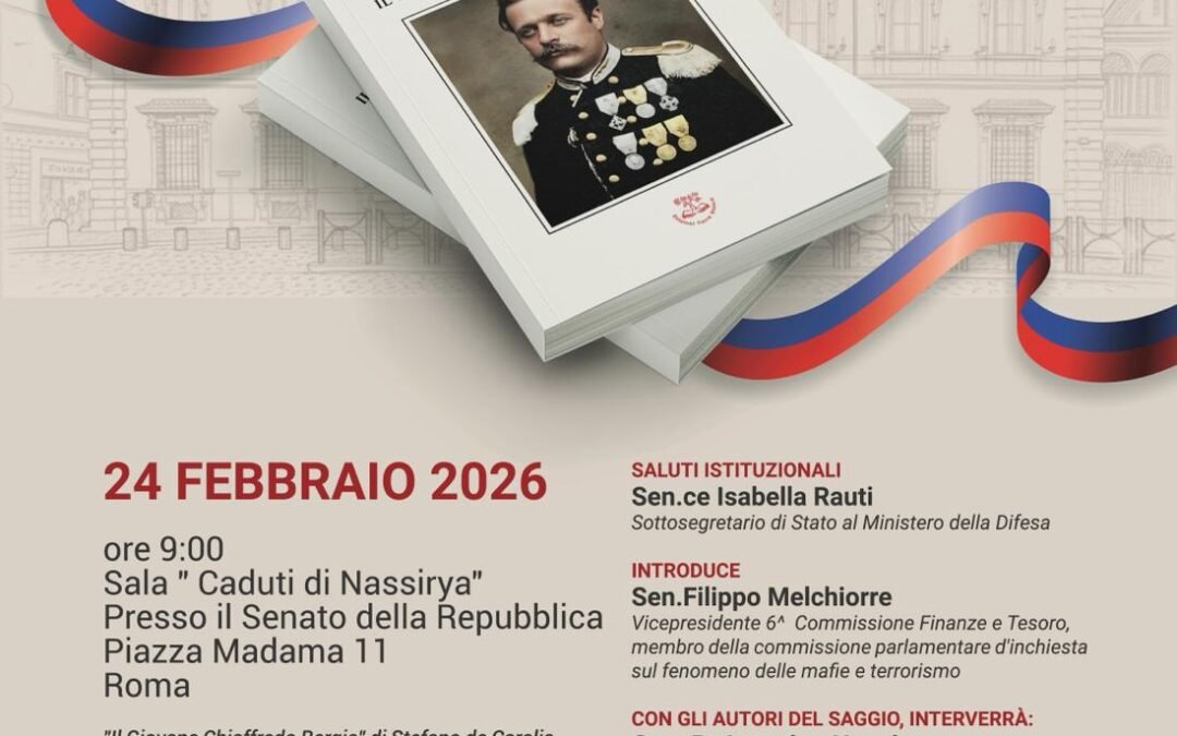 Martedì 24 febbraio 2026, alle ore 9.00, la Sala “Caduti di Nassiriya” del Senato della Repubblica (Piazza Madama 11, Roma) ospiterà la conferenza stampa per la presentazione del libro “Il giovane Chiaffredo Bergia” di Stefano de Carolis e Nicola Cotti, edito da Carta Bianca.