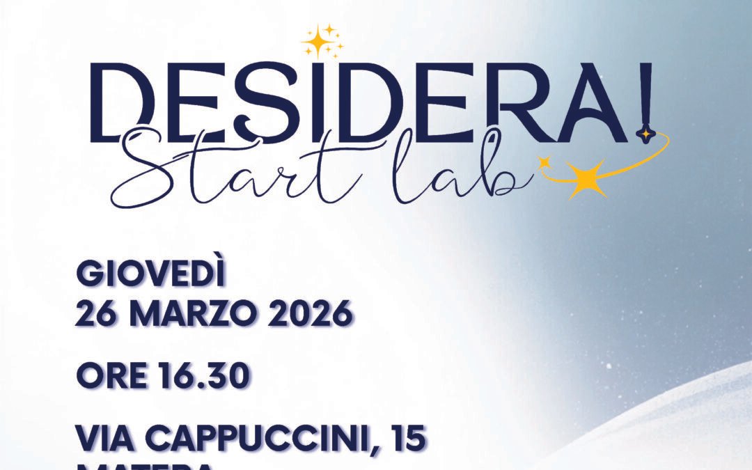 “DESIDERA Start lab” nasce dal desiderio congiunto della Arcidiocesi di Matera-Irsina e dell’Equipe del Progetto Policoro di creare uno spazio aperto e accogliente dedicato ai giovani per i giovani e con i giovani, dove poter studiare, incontrarsi, confrontarsi e sviluppare idee.