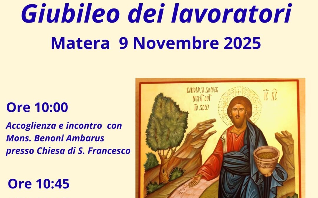 Domenica 9 novembre si celebrerà a Matera il Giubileo dei Lavoratori, un evento promosso dall’Arcidiocesi di Matera-Irsina nell’ambito del Giubileo della speranza della Chiesa cattolica.