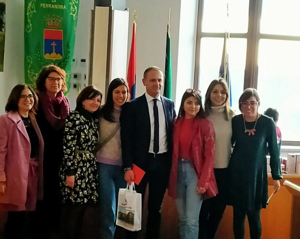 Nel pomeriggio la delegazione internazionale è stata ricevuta nella sala consiliare del Comune da sindaco e Amministrazione per l’accoglienza ufficiale nella Città di Ferrandina e lo scambio di doni. Al termine l’intero gruppo, guidato dagli studenti del Liceo di Ferrandina, hanno visitato la Chiesa Madre, il Museo della Civiltà Contadina, la torre di Santa Chiara e il museo archeologico multimediale MAFE. La giornata si è conclusa, nel salone di Santa Chiara, con musiche, danze e tradizioni locali a cura del gruppo folk “Tuppetupp” di Pomarico.