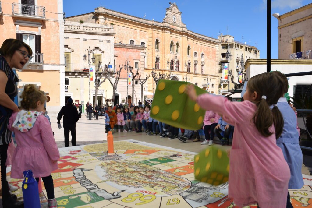 Sabato 19 alle ore 11.00, in Piazza Vittorio Veneto a Matera, l’Associazione MUV Matera APS – Museo Virtuale della memoria collettiva – , nell’ambito dei Mercatini di Primavera di Gusto Italia in Tour, sarà presente con la sua Maxi versione della ” Popr d Matàr” , versione rivisitata in chiave locale del conosciutissimo classico Gioco dell’Oca. Lo scopo è quello di favorire nei bambini l’apprendimento di nozioni e vocaboli inerenti la città di Matera, le sue antiche tradizioni, i suoi monumenti più importanti (riprodotti sul tabellone) ma anche incoraggiare il riuso di giochi della tradizione e la socializzazione in contrapposizione agli intrattenimenti a quelli digitali.