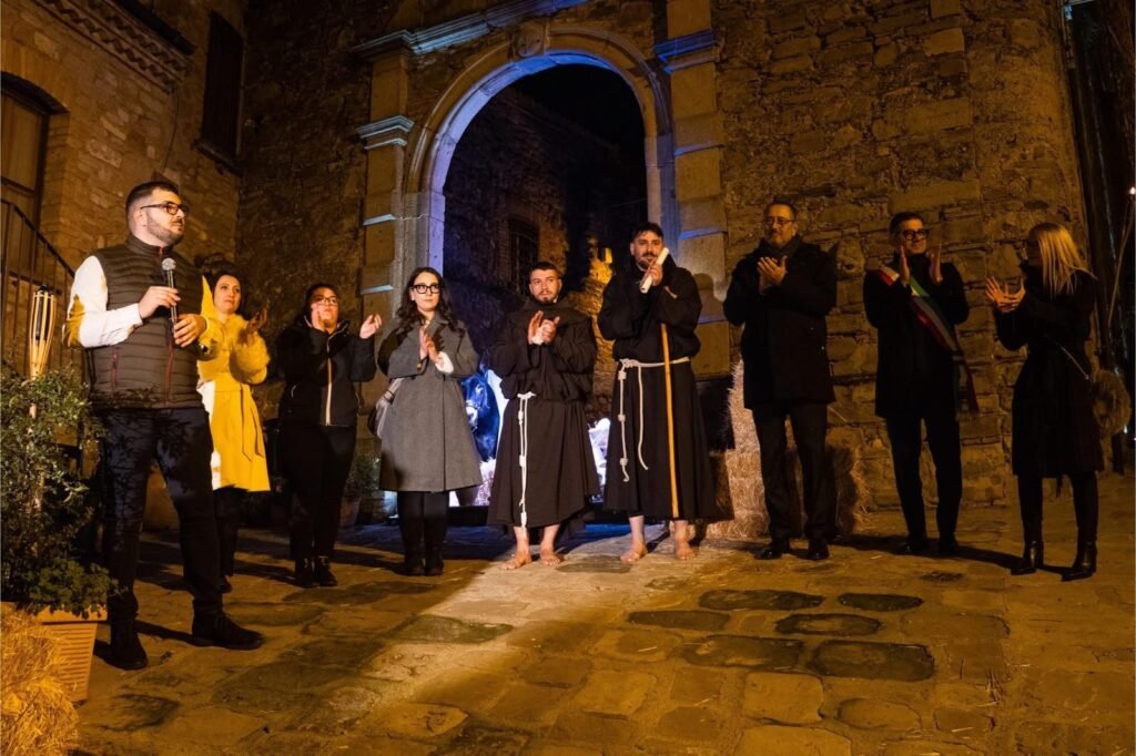 L’intero borgo si è fatto scena viva, accompagnando il pubblico in un percorso narrativo attraverso i quattro elementi celebrati dal Santo. Un racconto corale e coinvolgente, arricchito dai mercatini di Natale, dall’area ristoro, dalla presenza degli zampognari e dalle suggestive atmosfere musicali del gruppo Odor Rosae Musices.