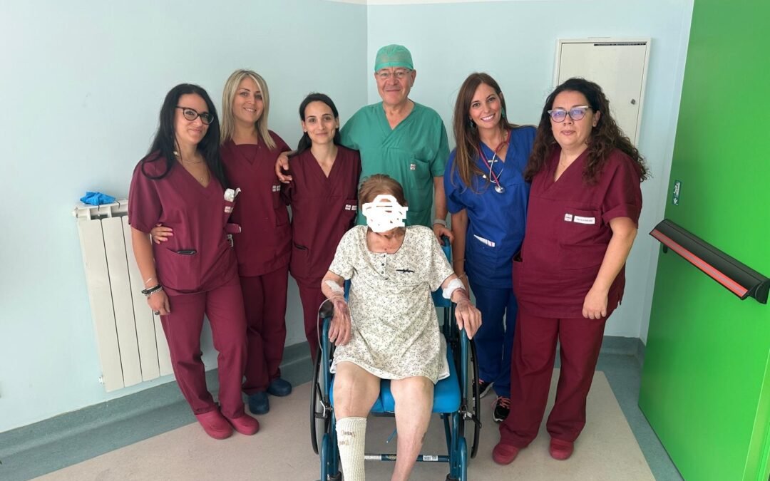 “La neoformazione a causa della compressione sulle più importanti strutture vascolari e viscerali oltre a dare molto dolore – spiega Pacifico- determinava l’insufficienza funzionale di più apparati, ponendo a grave rischio la vita della paziente. Un successo sanitario per il quale ringrazio tutta la mia equipe chirurgica, gli strumentisti Silvia Contuzzi e Francesco Chietera, l’anestesista presente in sala Marco Oliveto Rotondo, gli infermieri di sala operatoria Maria Bruno e Massimiliano Bianchi che hanno permesso di gestire e superare le difficoltà cardiorespiratorie che si hanno in presenza di neoplasie tanto voluminose, rese ancora più impegnative in una paziente di 88 anni con varie comorbilità. Un ringraziamento va inoltre a tutti colleghi medici e gli infermieri del Reparto di Chirurgia che hanno seguito amorevolmente e con professionalità, la paziente durante la degenza post-operatoria”.