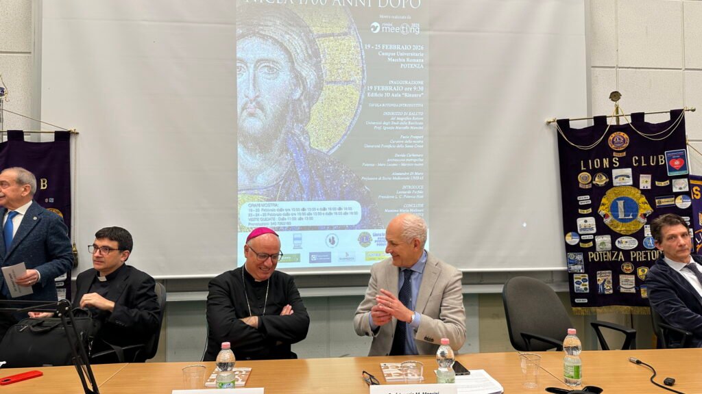 Alla presentazione della mostra a Potenza, ospitata fino al 25 febbraio 2026 nello spazio antistante l’Aula “Rinauro” e visitabile nei giorni nei giorni infrasettimanali dalle 10 alle 13 e dalle 16 alle 18, sono intervenuti il prorettore dell’Ateneo lucano prof. Onofrio Di Vincenzo, la Direttrice dell’Ufficio scolastico regionale Anna Dell’Aquila e mons. Davide Carbonaro, Arcivescovo della Diocesi di Potenza-Muro lucano-Marsico nuovo.