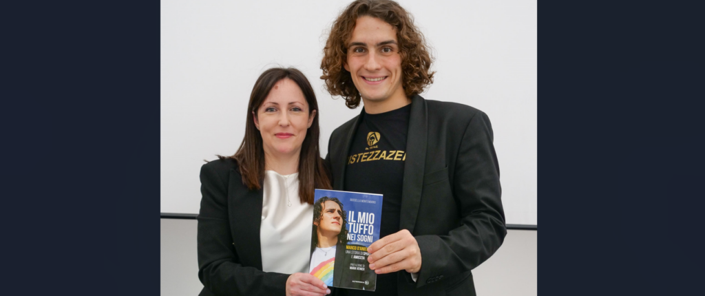 “Una famiglia che supporta la diversità e il talento personale, una tenacia incrollabile e l’incontro con persone eccezionali – insegnanti e professionisti che lo seguono nello sport. Una storia di sport quindi, ma anche di amicizia e di servizi alla persona, per la promozione della salute e del benessere bio-psico-sociale, di accoglienza, di promozione – dichiara il Dirigente Caterina Policaro. Un bambino a cui la vita ha donato sia le difficoltà ma anche la forza e la fede di diventare campione di nuoto conquistando, nel 2019 il record italiano assoluto Juniores 50 m. stile libero ai Campionati Nazionali FISDIR e diversi altri successi. La presentazione di questo libro è un evento che abbiamo fortemente voluto e costruito insieme a Rossella Montemurro come Istituto che ha un indirizzo specifico per la formazione dei futuri professionisti del sociale. Ringrazio la professoressa Caterina Ambrosecchia e i docenti che hanno curato la preparazione delle classi coinvolte, l’attività di lettura del libro e le esercitazioni da esso scaturite. Siamo certi che la presentazione del libro di Rossella Montemurro Il mio tuffo nei sogni. Marco D’Aniello, una storia di sport e amicizia (Altrimedia Edizioni, prefazione di Mara Venier) e, soprattutto, la possibilità di interagire di persona con la storia di Marco, ragazzo autistico di Taranto che, da vittima di bullismo e di una società non sempre disposta a integrare i più fragili, è riuscito a raggiungere traguardi importanti, sarà un’occasione di formazione e crescita non indifferente per le classi coinvolte.”