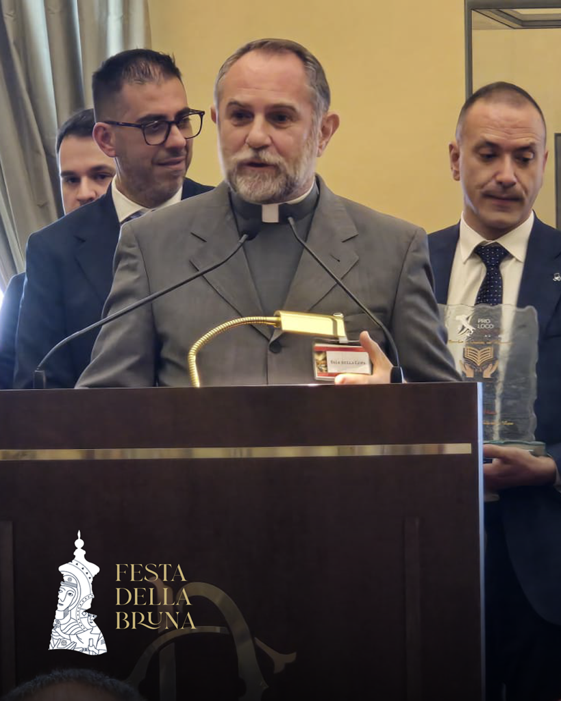 A ritirare il riconoscimento, consegnato da Pasquale Ciurleo, presidente nazionale della Rete associativa di Terzo Settore Ente Pro Loco Italiane APS, è stato don Francesco Di Marzio, delegato arcivescovile per la Festa e vicepresidente dell’Associazione Maria SS. della Bruna.